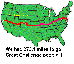 Final Feb 2, 2004 95498 minutes accumulated 4774.9 miles travelled Takes us from Delaware to Feather Meadow Resevoir Area California!!! Short by 273.1 miles